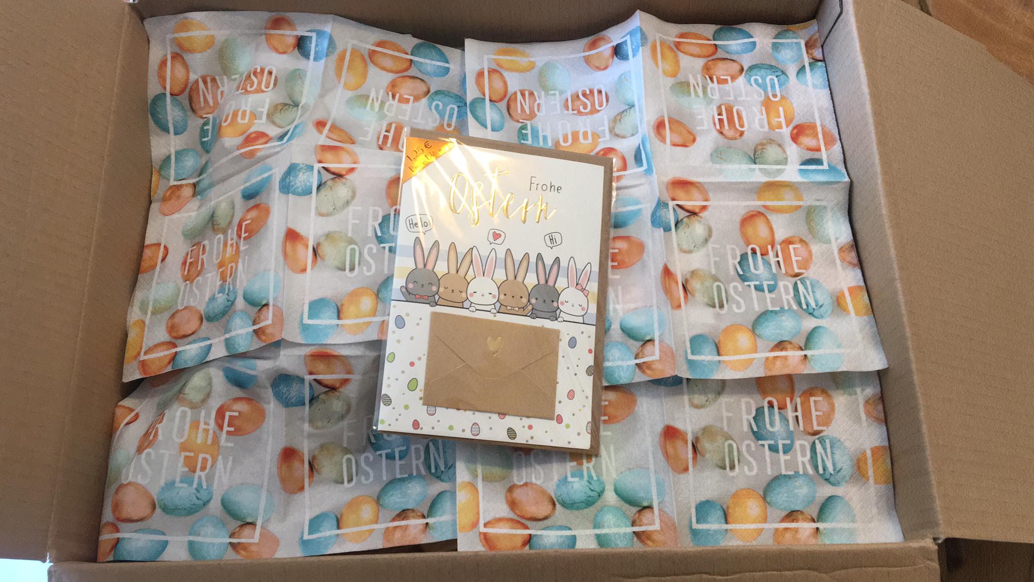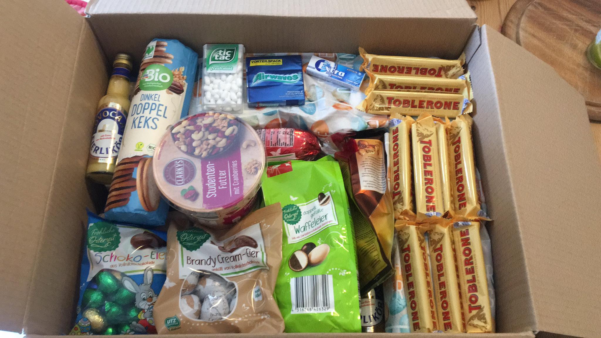 Direkt nach dem Telefonat kontaktierte ich meine Geschwister und meine Mutter und erzählte ihnen von meiner Idee. Erstens weil ich finde, dass es noch viel schöner ist, wenn alle zusammen etwas schenken und Zweitens, weil ich als Studentin nicht wirklich viel Geld zur Verfügung habe und ich mehr als nur ein paar Rollen Klopapier verschicken wollte. Alle waren begeistert von der Idee und überwiesen mir sofort Geld. Da es meine Idee war, wollte ich das Paket zusammenstellen und anschließend verschicken. Zufälligerweise waren es auch nur noch ein paar Tage bis Ostern, was das Geschenk noch wunderbar abrundete.