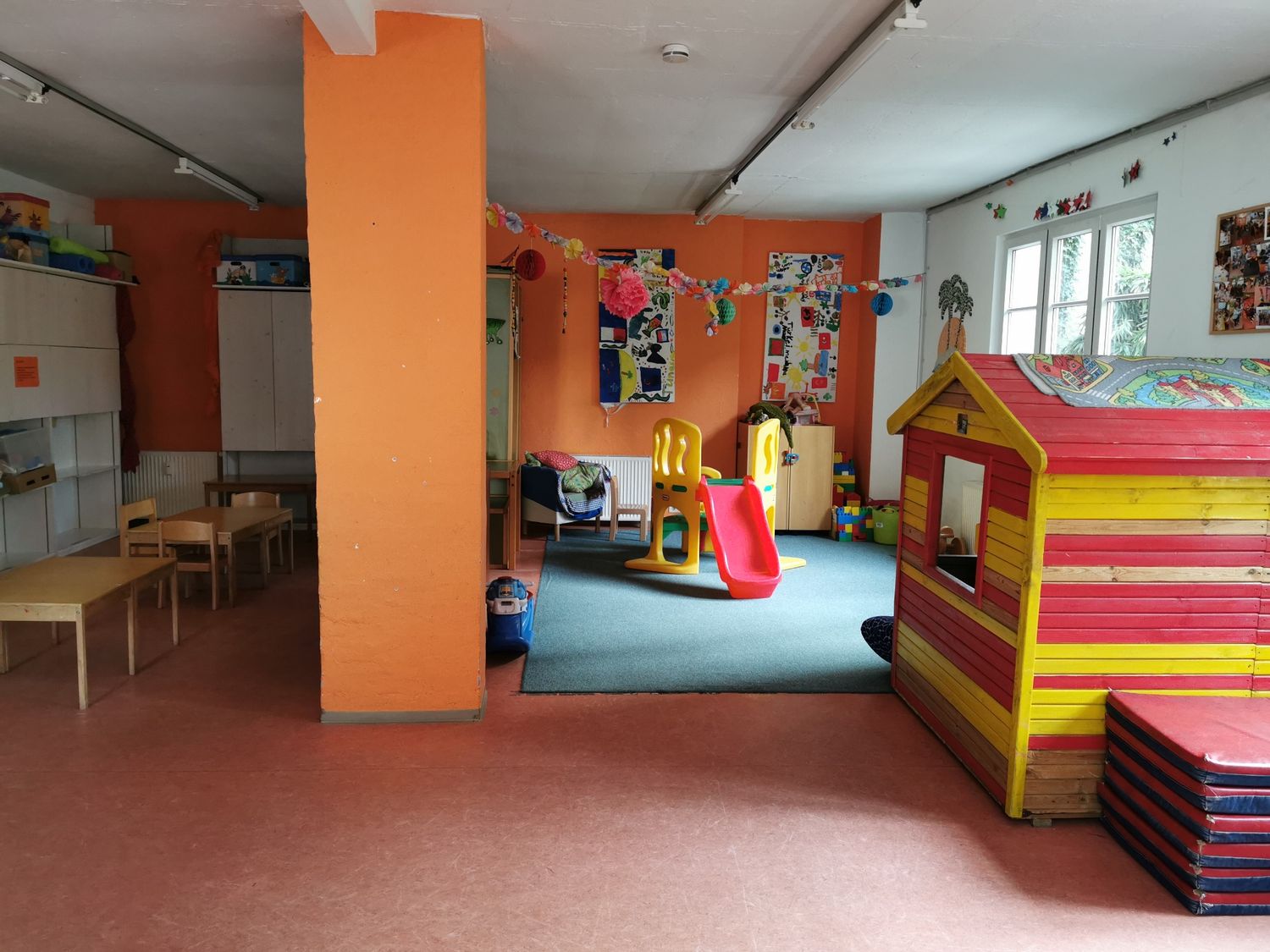 „Unser Haus lebt hauptsächlich durch unsere circa 80 Ehrenamtlichen.“, berichtet mir Sabine Corriger, die im Mehrgenerationenhaus als Sozialpädagogin arbeitet, „Unterstützt werden diese durch eine Köchin, die halbtags für das MGH und den Hort angestellt ist und durch – mich einberechnet – zwei Sozialpädagoginnen. Wir haben insgesamt 22 Wochenstunden in denen wir größtenteils konzeptionell und koordinierend arbeiten.“ Die Sozialpädagogin fährt fort: „Der Träger des Hauses ist SOS-Kinderdorf und da die Angebote hauptsächlich durch unsere Ehrenamtlichen getragen werden, arbeiten wir sehr eng mit dem Zentrum Aktiver Bürger zusammen, die uns in der Ehrenamtsbetreuung und -beratung unterstützen.“