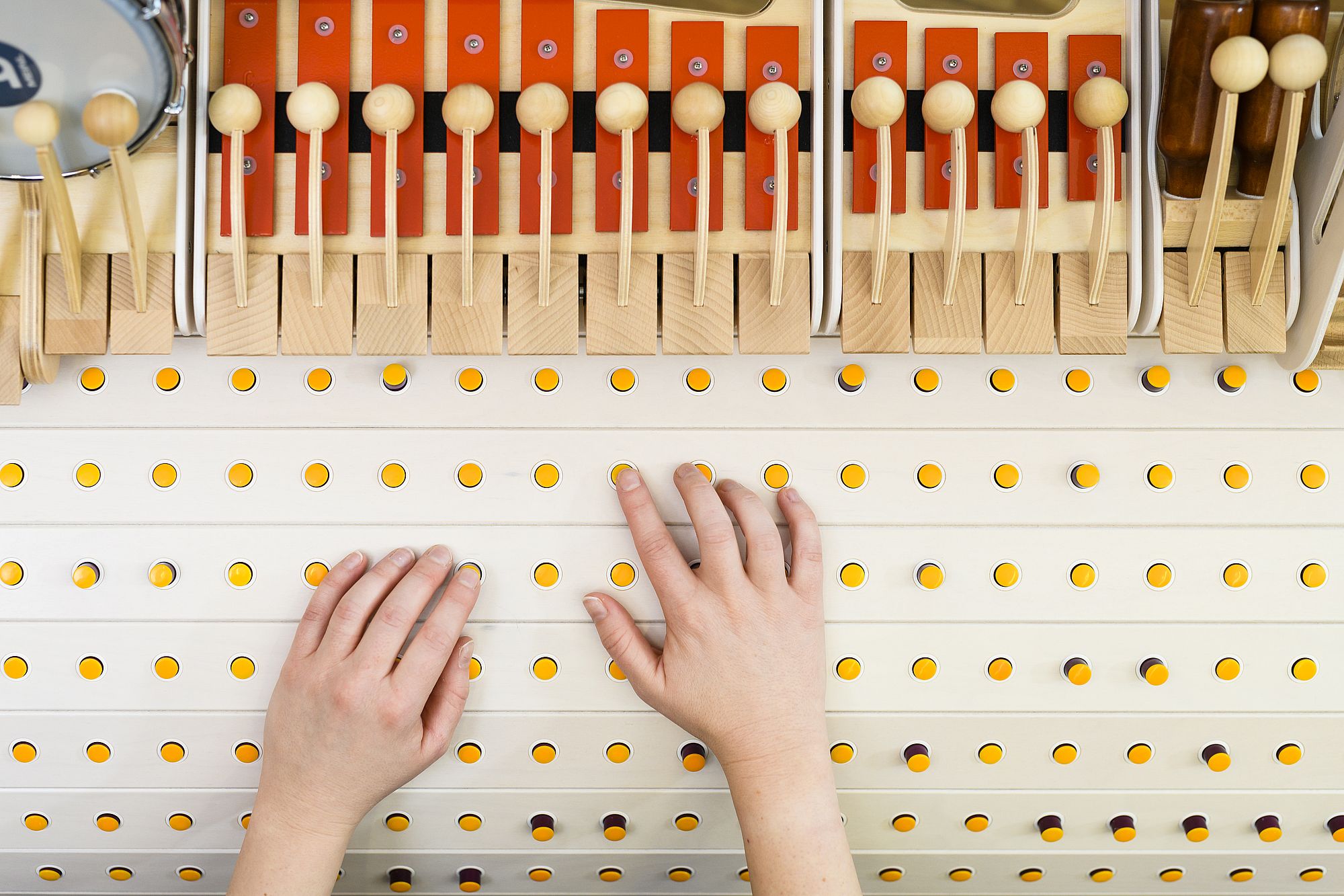 Das Besondere an der Klingenden Etage sind die vielen Möglichkeiten, selbst Musik zu machen und mit Musik in Berührung zu kommen. Auf dem Musicon, einer großen Walze mit vielen Knöpfen und Instrumenten oben drauf, spielen am liebsten Kinder ab etwa zwei Jahren. Begeistert drücken sie Knopf um Knopf und erzeugen ganz ohne nötige Vorkenntnisse Geräusche und Töne. Denn herauszufinden, wie so ein großes Gerät funktioniert, macht den größten Spaß! Kinder und auch Erwachsene kommen beim Dato Duo, einem Kindersynthesizer, voll auf ihre Kosten. Ob der Rhythmus schnell oder langsam pocht, zeigt ein Hebel mit Hase und Schildkröte, die Länge der Pattern werden durch zwei Tiere, eines mit langem, eines mit kurzem Hals, symbolisiert. Hier spielen jetzt schon die DJs von morgen!