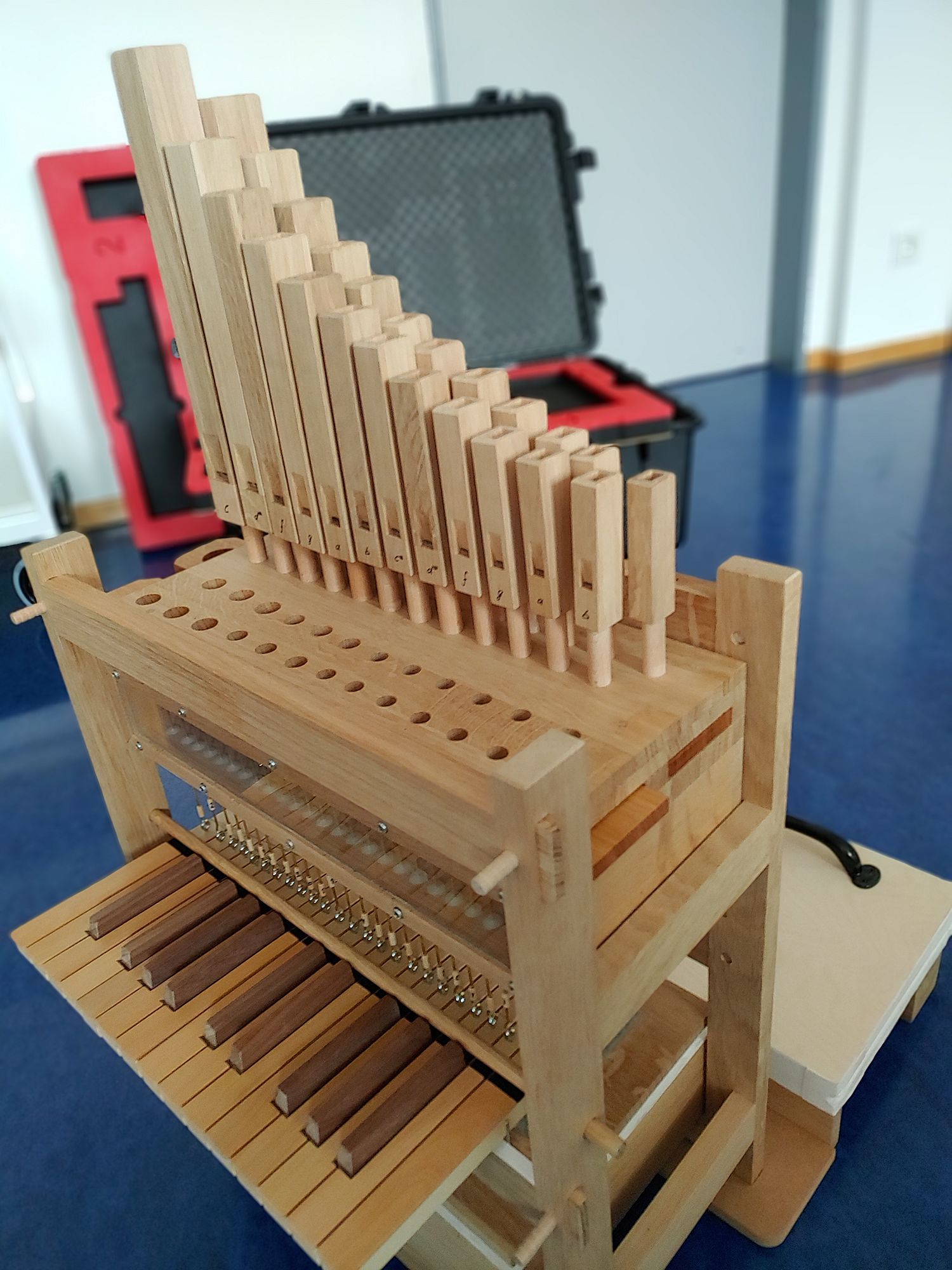 Für kleine und große Entdecker steht mitten in der Bibliothek eine Orgel, in die man dank eingebauter Plexiglasscheiben hineinschauen kann und die Funktionsweise des Instruments erfährt. Immer wieder kommt ein Bibliotheksbesucher vorbei und spielt eine kurze Melodie auf der Orgel.