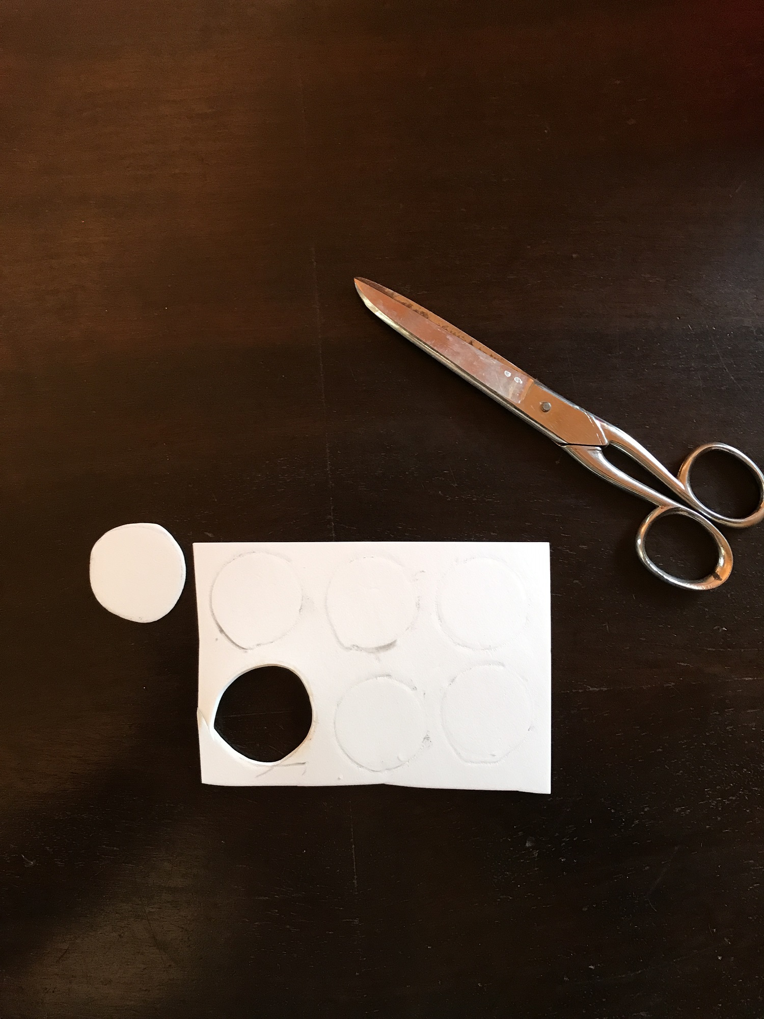 Wir lassen den Pilzhut trocknen und widmen uns den lustigen weißen Punkten die auf keinem Fliegenpilz fehlen dürfen! Dafür habe ich wieder die Flasche umgedreht und die Öffnung als Schablone genutzt. Ihr könnt große und kleine weiße Punkte ausschneiden, ganz so wie ihr es wollt.