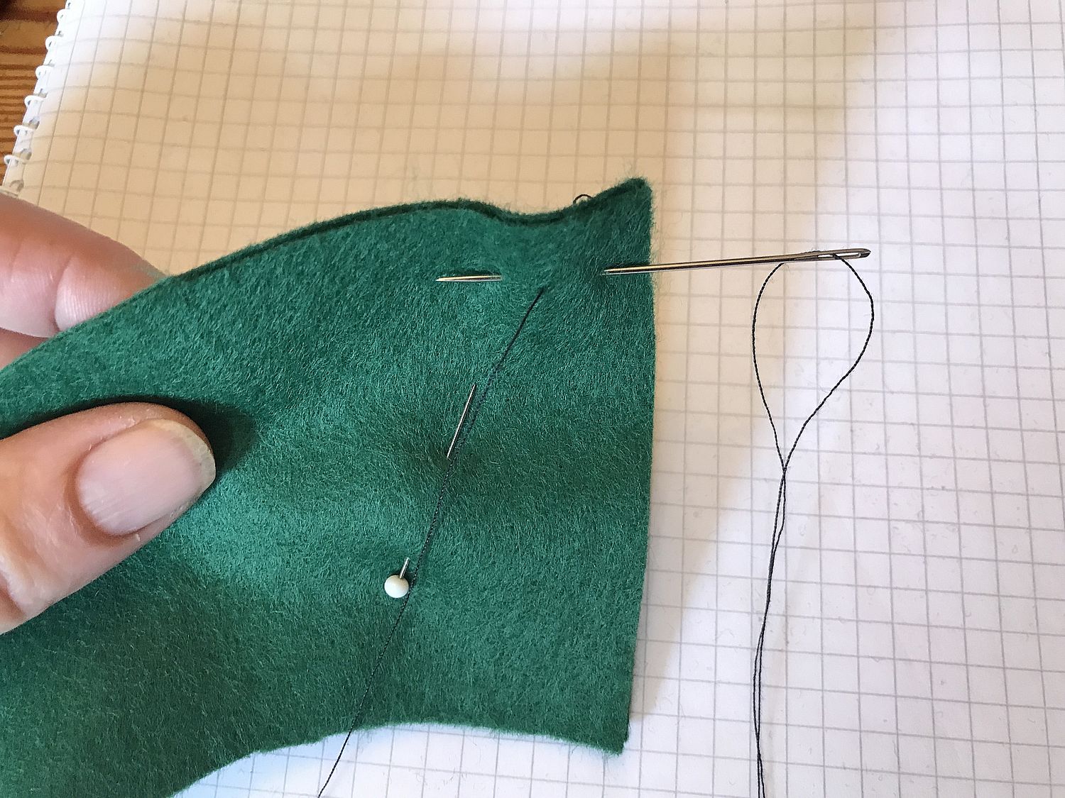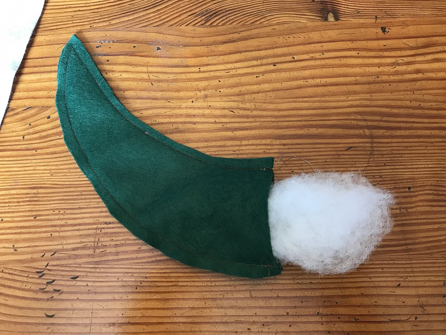 Ihr könnt die Nähte auch mit einer Nähmaschine machen, mit der Hand geht es aber genauso. Wenn ihr nicht wisst, wie ihr die Stiche setzen müsst, schaut euch am besten ein Video zum Beispiel auf YouTube darüber an. Näht die Hörner einmal rundherum, lasst aber die schmale Seite offen. Dort müssen wir die Füllwatte reinstopfen, damit die Hörner auch schön rund werden. Stopft nicht allzu fest, dann werden die Hörner zu schwer um sie an der Monstertüte zu befestigen. Nun könnt ihr die Hörner komplett zunähen.