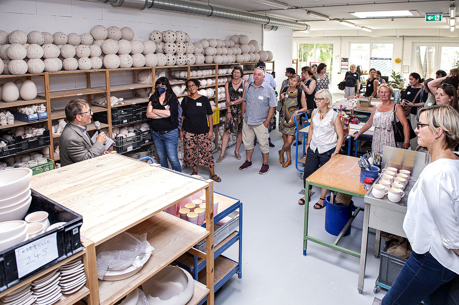 Und nicht nur das, als besonderes Highlight führte Christian Schadinger, Geschäftsführer der Noris Inklusion über das Gelände: Hühner, Bienen, Schafe, zwei Kitas, ein im Bau befindliches Haus für weitere Wohngruppen für Mitarbeitende und natürlich die Erlebnisgärtnerei und die Töpferwerkstatt. Ein tolles Konzept mit Vorbildcharakter: