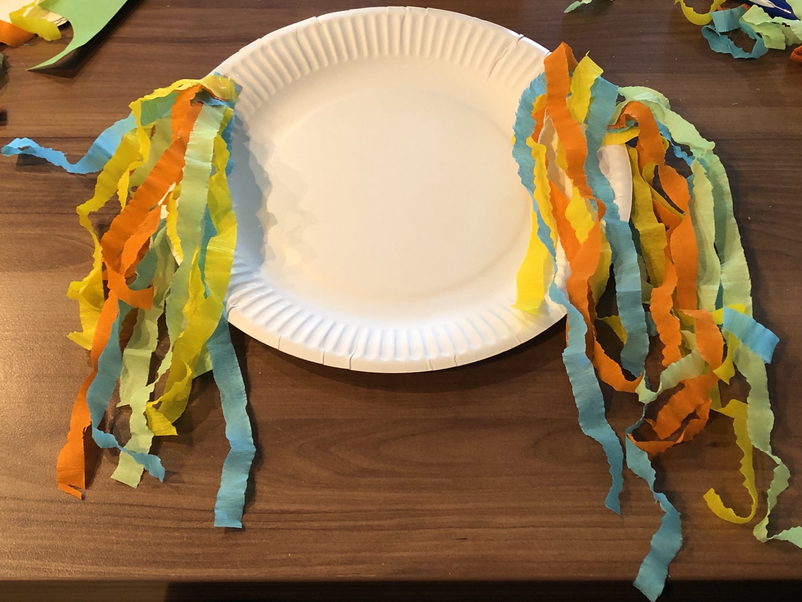 1. Ihr nehmt Euch einen Pappteller, der als Gesicht und Kopf dient.
