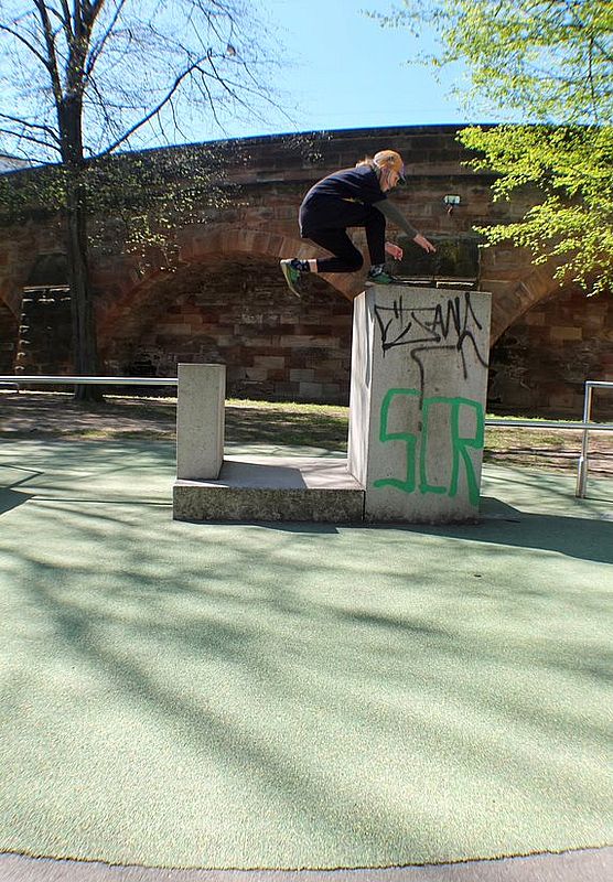Auf der Übungsfläche im Nürnberger Burggraben tummeln sich an schönen Tagen Profis, Anfängerinnen und Anfänger aller Altersgruppen, die sich gegenseitig unterstützen und Mut zusprechen, sich Tricks zeigen, Bewegungsabläufe analysieren und gemeinsam Abenteuer erleben. Es gibt tolle Ferienkurse, in denen Kinder die Grundlagen in einem sicheren Rahmen erleben können und sich in der Gruppe gegenseitig ermuntern, die Grenzen des Machbaren zu erweitern.