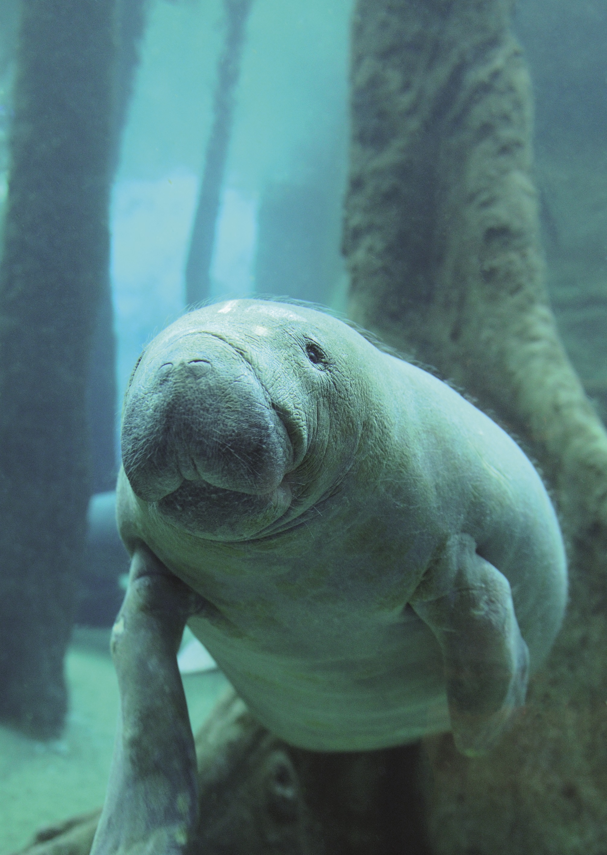 Wenn Jonas dann wieder eingepackt im Kinderwagen steckt, fährt ihn seine Mama vielleicht noch in den Blauen Salon. Dieser liegt unterhalb des Manatihauses und auch dort ist Entspannung pur angesagt, wenngleich eher für größere Kinder als den quirligen Dreijährigen. Es geht jedoch ganz einfach: durch die große Unterwasserscheiben die sachte dahintreibenden Seekühe beobachten und wegdriften.