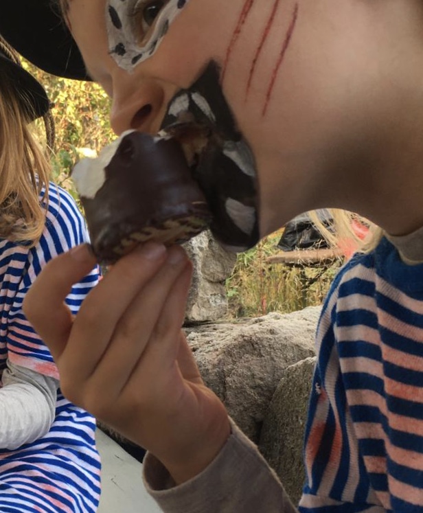 Drei oder vier Jahre in Folge klingelte jedes Jahr ein kleines Grüppchen Kinder an unserer Tür. Mein Sohn und ich waren jedes Mal unkostümiert, rückten aber dennoch immer gern ein paar Süßigkeiten heraus. Im letzten Jahr verwandelten wir uns kurz entschlossen in Vampire, um die Bande endlich einmal gebührend zu empfangen. Diesmal klingelte niemand. Ein kleiner Vampir, der nicht zum Einsatz kommt, ist eine traurige Sache. Dieser Abend war für uns beide so frustrierend, dass wir trotzig beschlossen, im Herbst 2019 unsere eigene Halloween Party zu schmeißen!