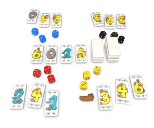 Inhalt: 110 Zahlenkarten (Werte:0-10, in je zehn div. Farben), 1 Spielregel