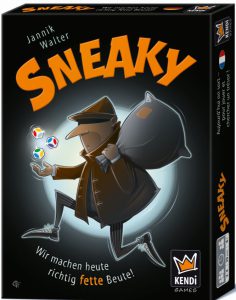 „Hol dir Beute, wo immer du kannst!“, ist die Devise unseres neuen und einfachen Nervenkitzlers. Es geht um Thrill, um Handschellen- und um Räuber-Karten. Sneaky (engl.) steht für heimtückisch, raffiniert… Ihr versucht Gauner(karten) zu erwürfeln. Doch eure geschnappten Gauner können von den anderen wieder weggeschnappt werden…
