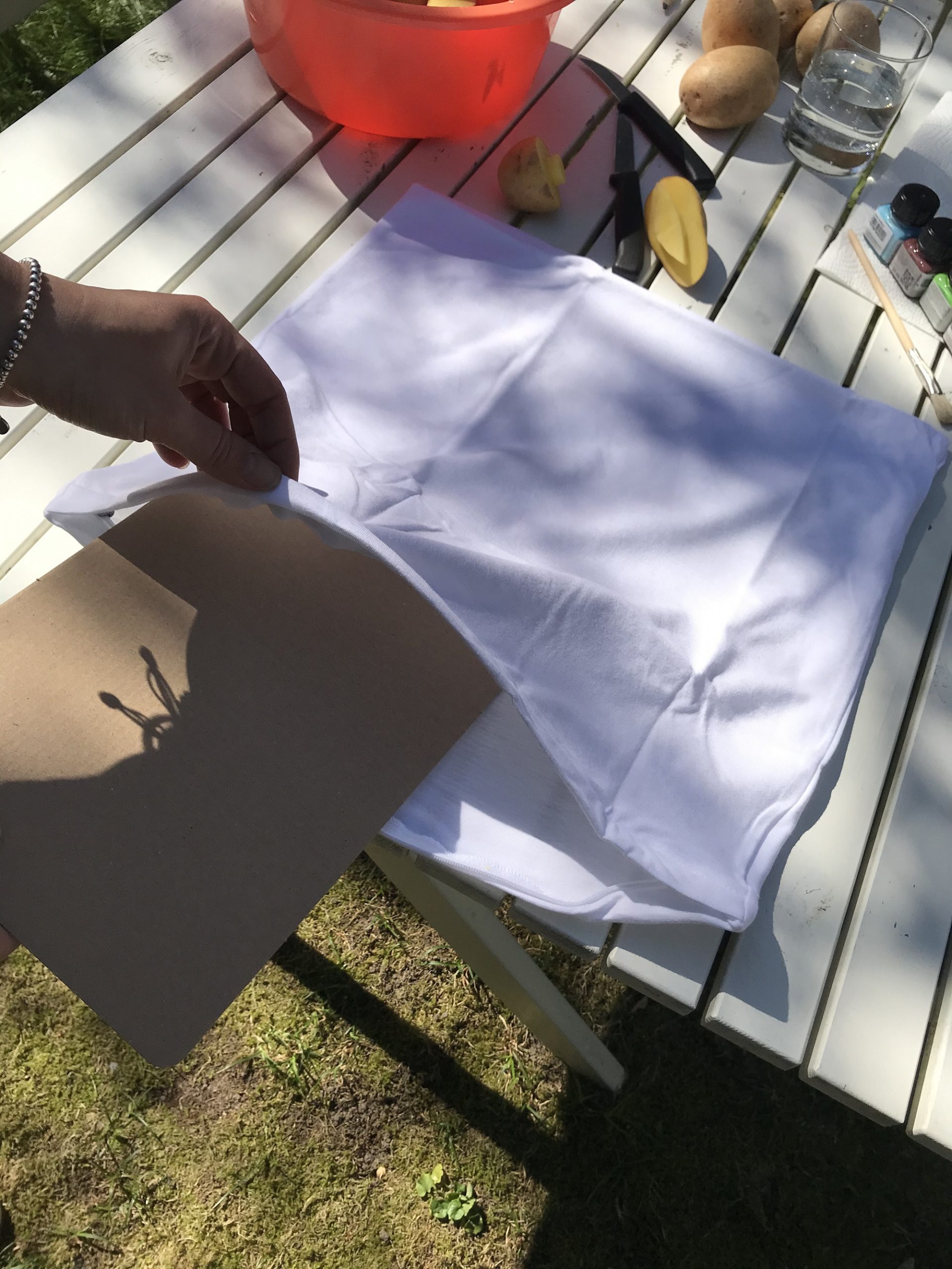 Nun lege ich den Karton in die Kissenhülle, damit die Farbe nicht durchdrückt.