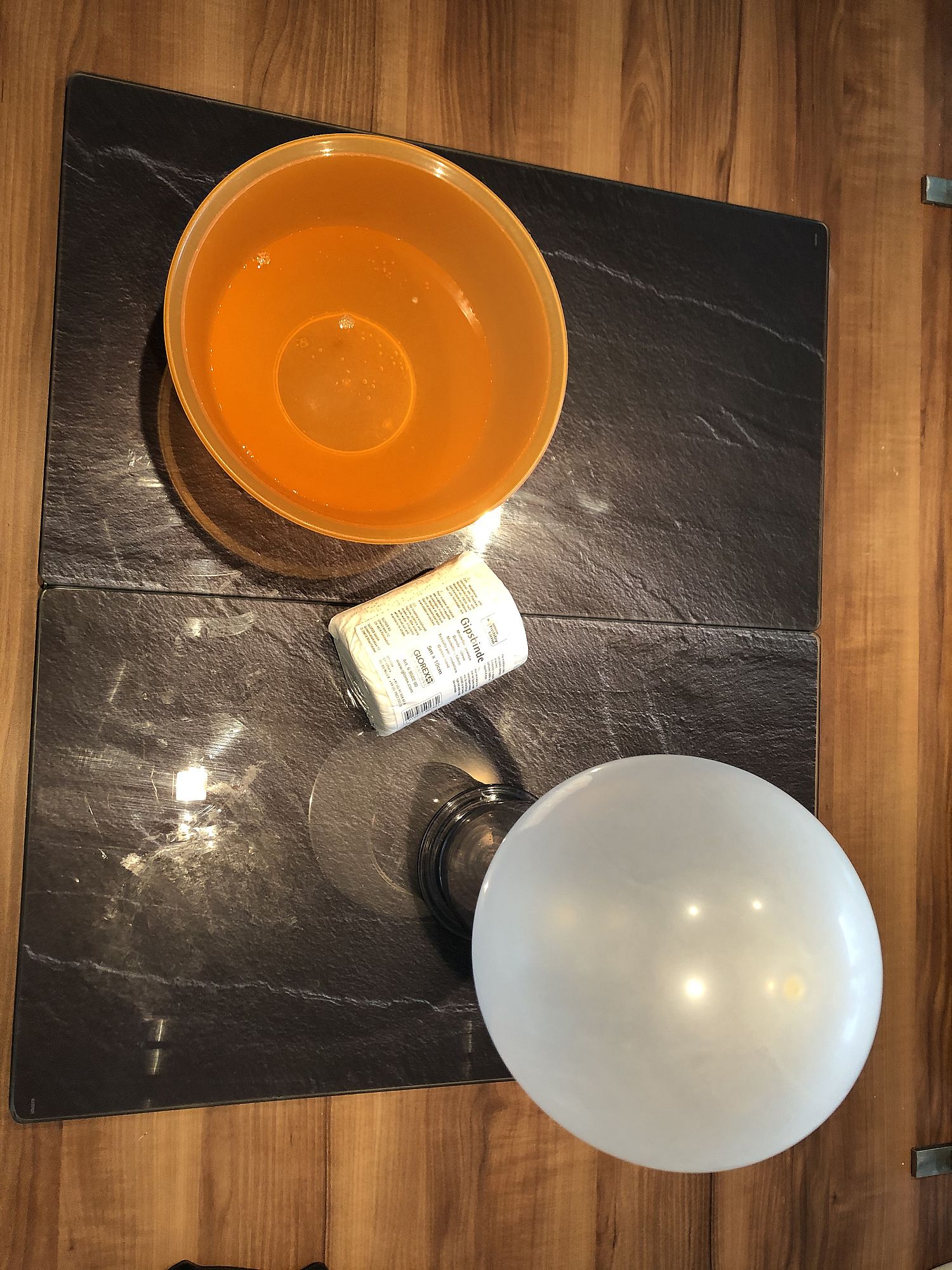 - Am nächsten Morgen nehmt Ihr die Nadel, stecht sie in den Luftballon ein und habt dann quasi einen hohlen Gipsabdruck vom Ballon als Hülle übrig.