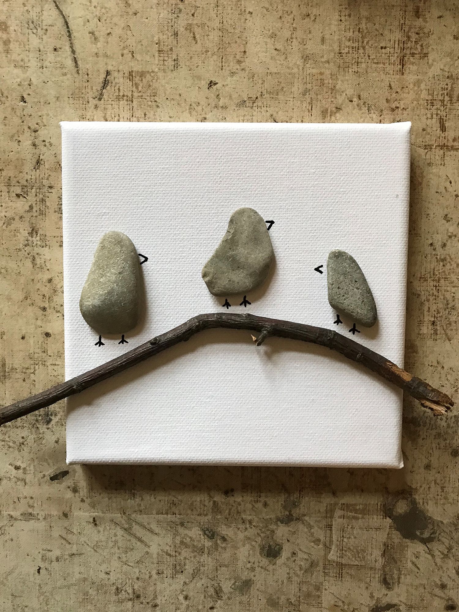 Rustikale Frühlings-Vögelchen aus Kieselsteinen
