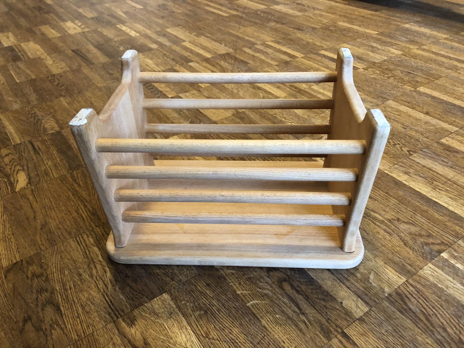 - Wenn Ihr fertig mit dem Verspinnen seid, könnt Ihr verschiedene Gegenstände auf die unterschiedlichen Etagen legen. Ich verwendete Astscheiben, Ringe, Löffel, Bälle oder Korken.