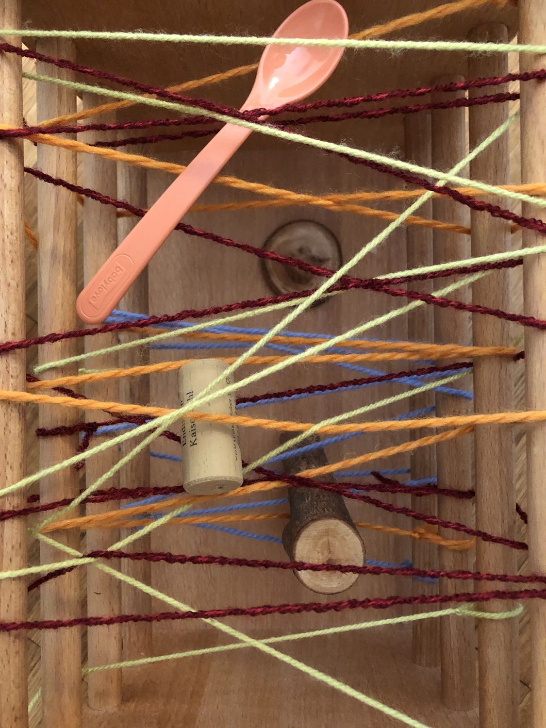 - unterschiedlich dicke Schnüre oder Wollfäden in verschiedenen Farben