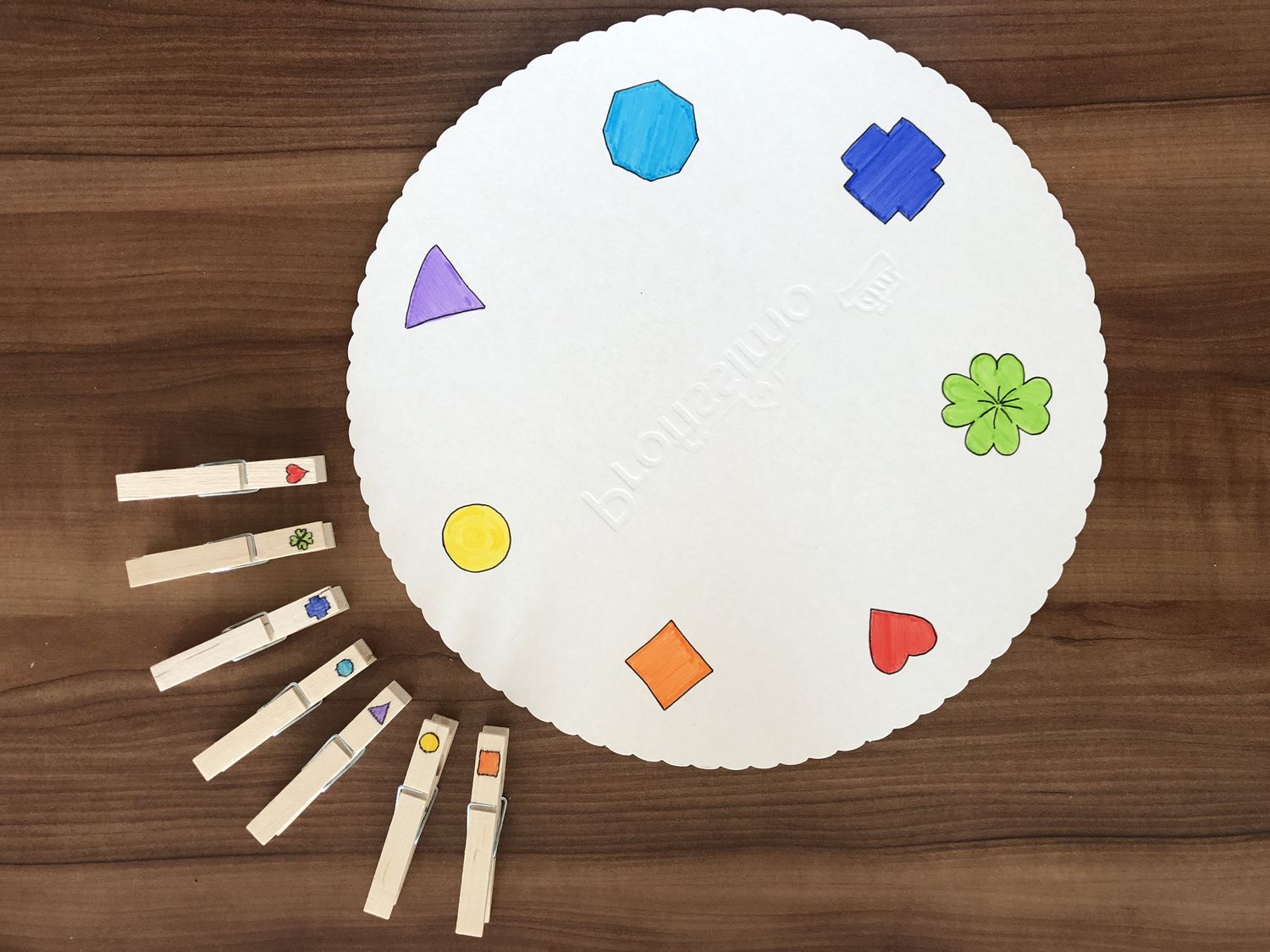 Die Herausforderung besteht darin, anhand der dünnen gemalten Schnüre den Ballon zu erkennen und zusätzlich die richtige Wäscheklammer zuzuordnen. Darüber hinaus wird die Augen-Hand- Koordination gefördert. - Bei dem Pappteller mit den verschiedenen Formen geht es darum, dass Eure Kinder die Formen auf den Wäscheklammern, den abgebildeten Formen auf dem Pappteller zuordnen und an den jeweiligen Rand klemmen, wenn die Übereinstimmung der Bilder stimmt. Die Herausforderung besteht darin, dass Eure Kinder die Abbildung auf den Wäscheklammern mit denen auf dem Pappteller abgleichen müssen und dementsprechend zuordnen sollen. Wieder wird dabei die Augen-Hand-Koordination geschult.
