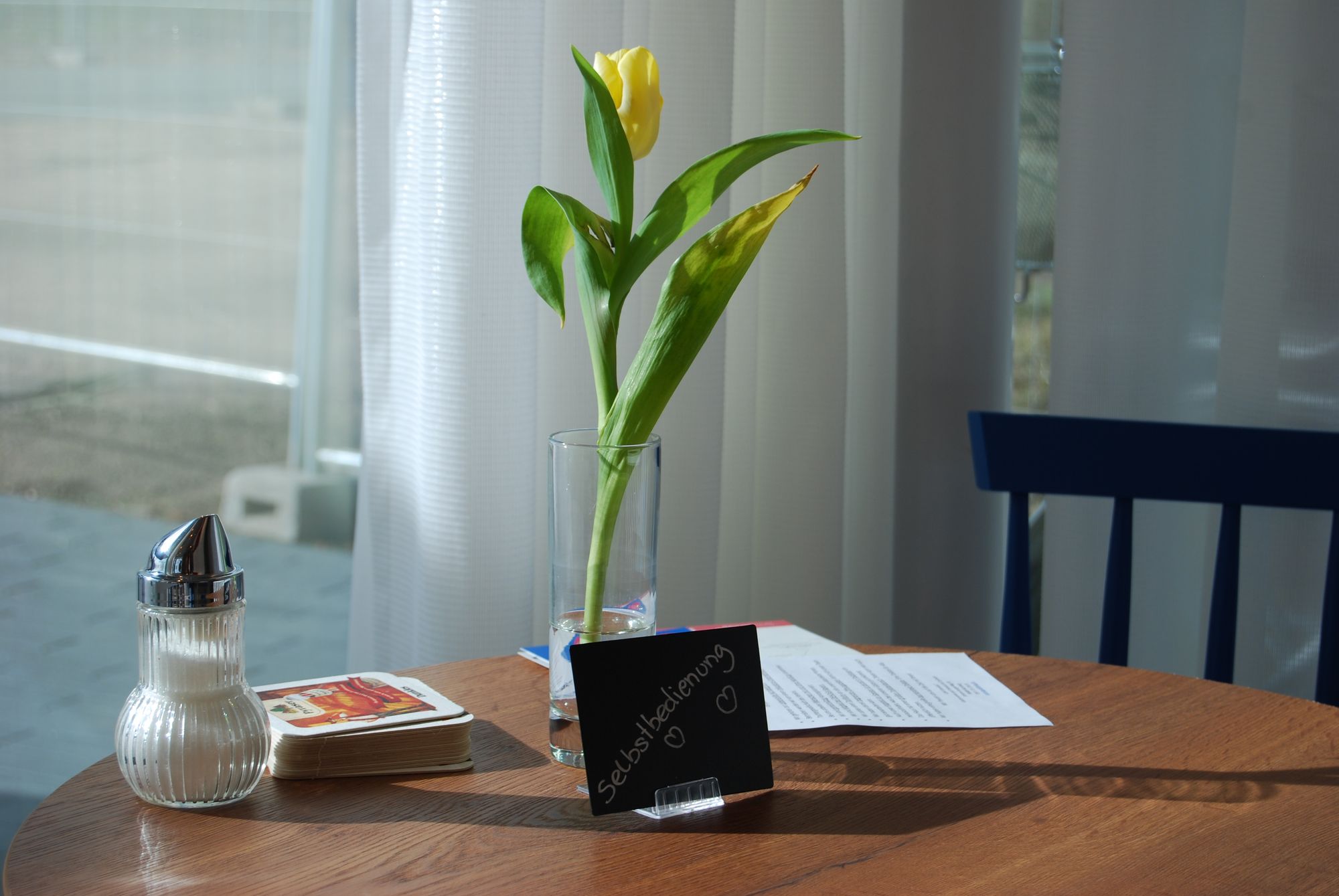 Im Innenbereich und auf der Außenterrasse kann bei gutem und schlechtem Wetter regional gerösteter Kaffee mit hausgemachtem Gebäck ebenso genossen werden wie regionales Bier und herzhafte Schmankerl. Kaffee kann auch im Pfandbecher mitgenommen werden und ein Eis am Stiel für die Kleinen gibt es ebenfalls im hellen Gastraum mit großen Glasfronten. Dekoration und Ausstattung bringen ein wenig maritimes Flair. Begrünung und Photovoltaikanlage auf dem Dach sind gerade im Entstehen begriffen.
