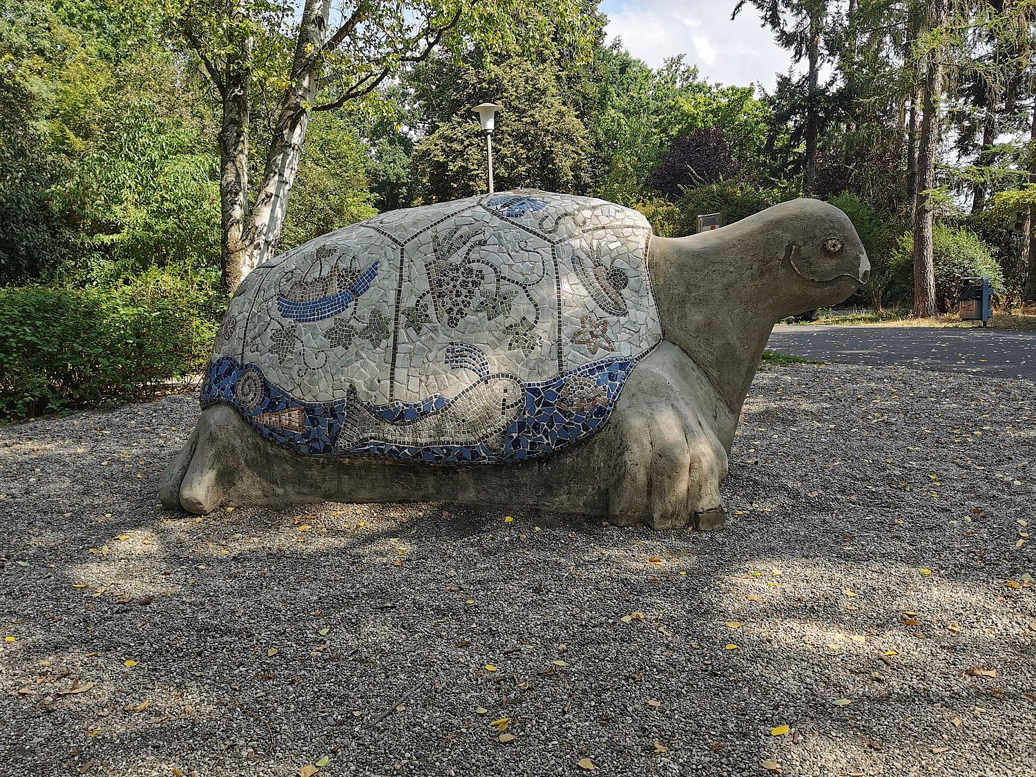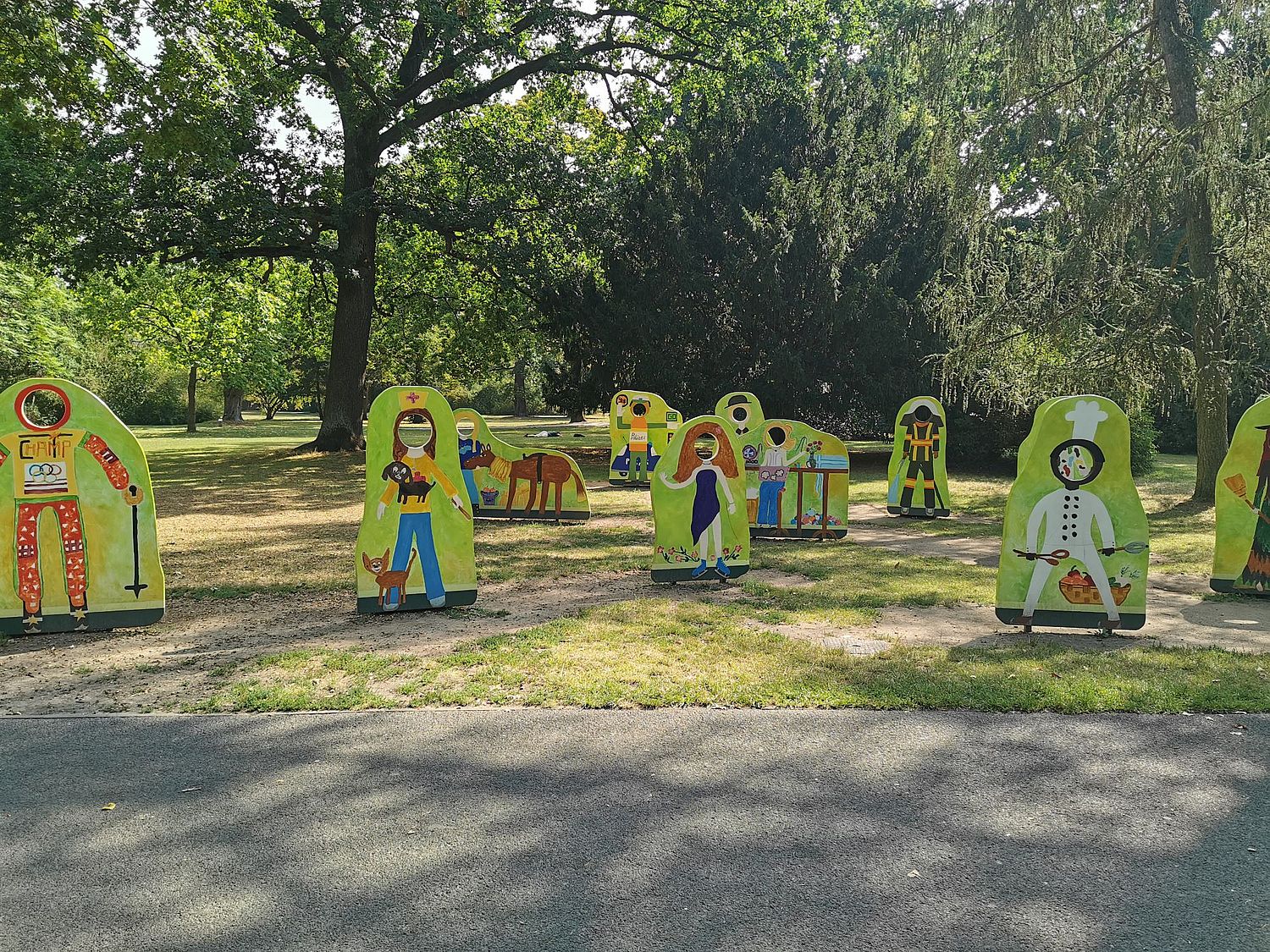 Viele Kinder hüpfen auf dem Spiel-Weg hin und her und vor und zurück. Andere stecken ihre Köpfe durch die Gleichheitsfiguren und bitten ihre Eltern lautstark Bilder von ihnen als Eis-Prinzessin, Hexe oder Feuerwehrmann zu machen. Heute tummeln sich außerdem – verständlich bei 30 Grad im Schatten – viele Kinder an der 5. Station, einer Schildkröte, die auch als Trinkwasserbrunnen dient.
