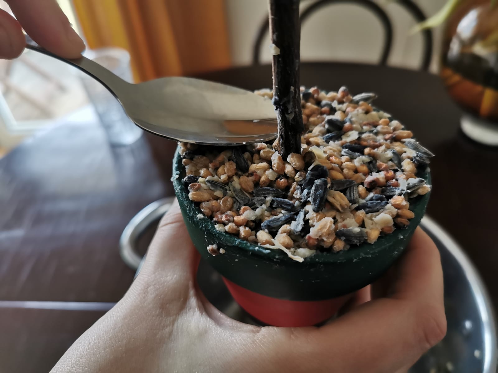 - Streufutter für Vögel (hier habe ich ungefähr 150 Gramm verwendet)