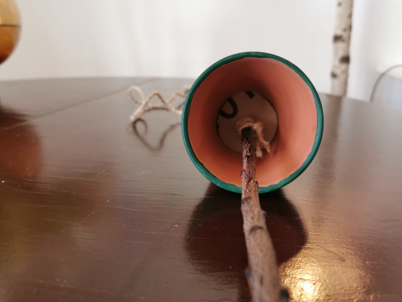 - Einen stabilen Ast (dünn genug, dass er durch das Bodenloch passt)