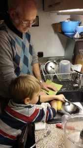 Wir basteln, pflanzen etwas im Garten an, wir lesen, malen und spielen. Sie erleben bei uns älteren Menschen eine ganz andere Art zu leben, schon allein deswegen, weil die Kräfte nicht mehr die gleichen sind. Mit Mama und Papa geht man zum Schlittschuhlaufen oder auf große Ausflüge. Wir gehen spazieren, in den Wald oder auf den „Flughafenberg“. Und natürlich haben wir auch eine andere Sicht auf viele Ding, weil wir ganz anders aufgewachsen sind. Das versuchen wir weiterzugeben – unsere Werte zu vermitteln, ohne dass sie im Widerspruch zu denen der Eltern stehen.
